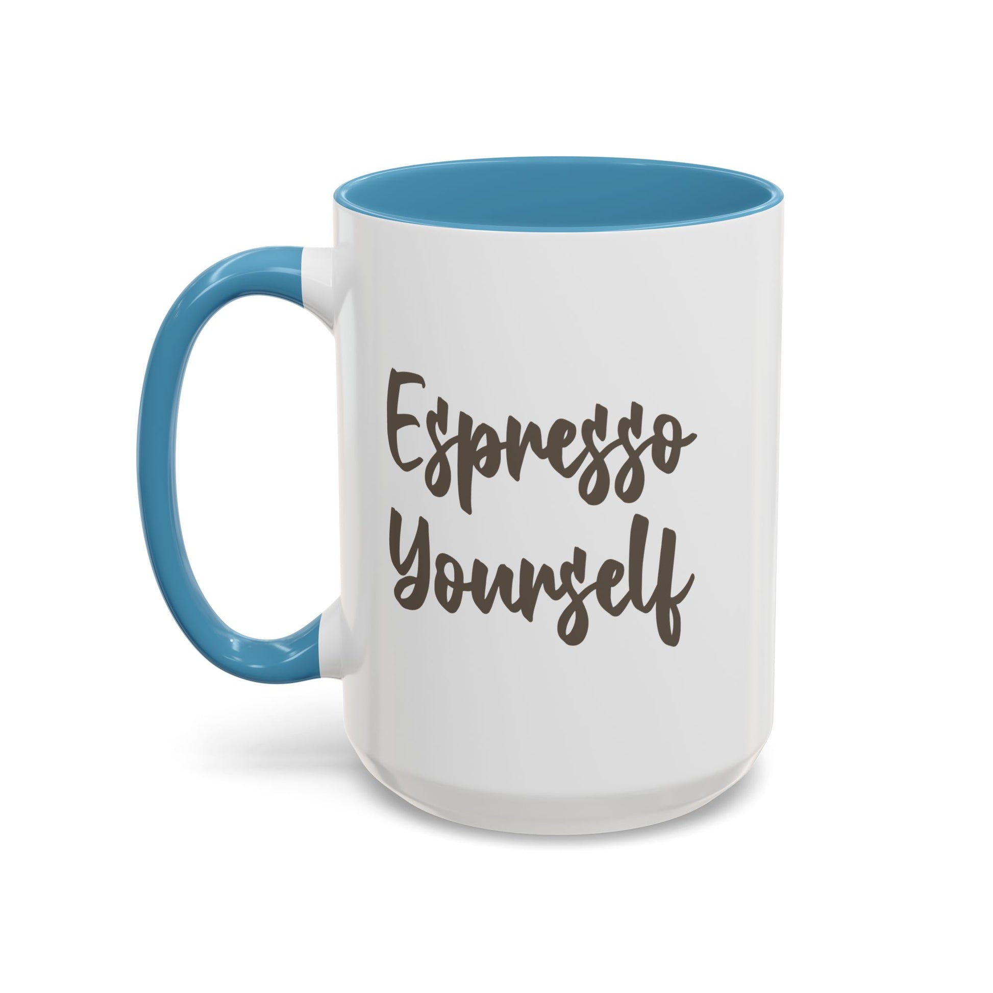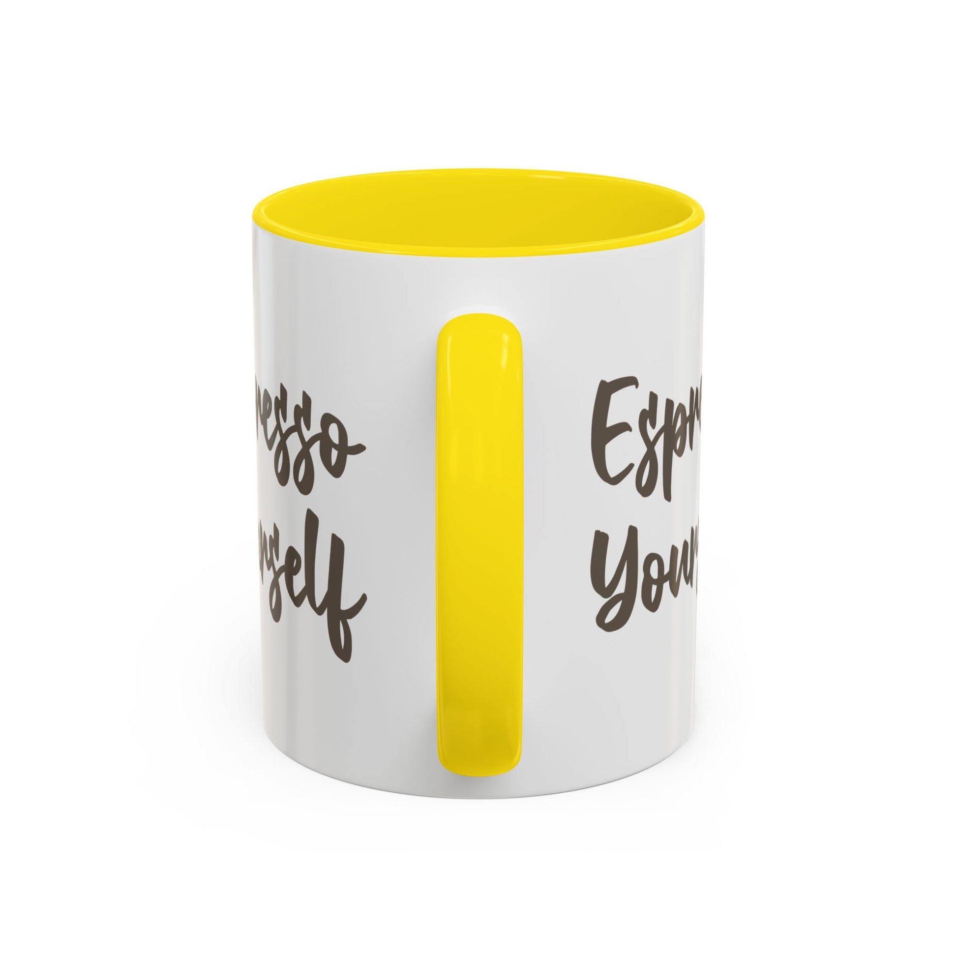 Infuse your morning ritual with a dash of wit and whimsy using the GiggleStitch "Espresso Yourself" Accent Coffee Mug. This charming 12oz ceramic mug boasts a playful, hand-illustrated design that boldly declares "Espresso Yourself" in elegant, flowing script—perfect for the coffee aficionado who believes every brew is a chance to express your vibrant personality. The warm, earthy brown lettering swirls across the mug like a perfectly steamed latte, evoking the cozy allure of your favorite café while adding a touch of modern flair to your kitchen shelf or office desk.