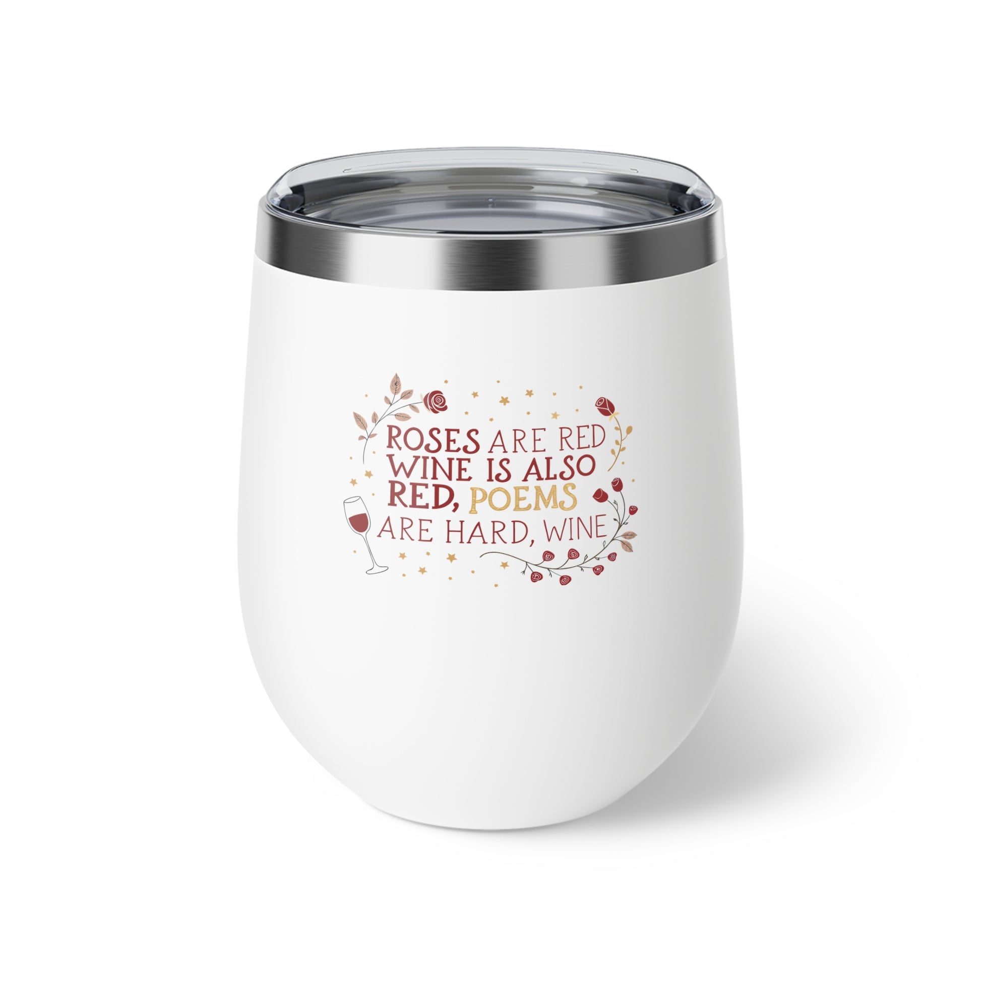 Elevate your happy hour with the GiggleStitch "Roses Are Red Wine" Tumbler – where classic poetry meets cheeky wit, and your red wine stays perfectly chilled (or mulled, if that's your vibe). This 20oz double-walled stainless steel tumbler features our exclusive hand-illustrated design: a whimsical cascade of crimson roses, golden stars, and elegant vines framing the timeless (yet hilariously honest) verse: